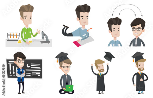 Vector set of student and teacher characters.