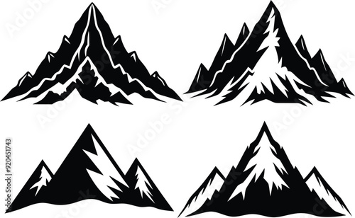 Vector silhouette art of Mountain set