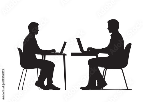 vector silhouette man working at computer