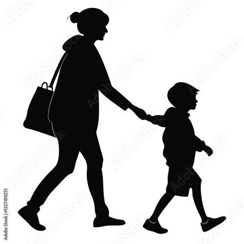 vector silhouette of a Mother and son