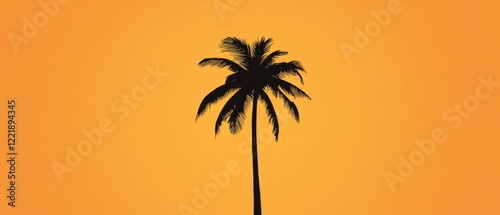 Vector silhouette of coconut tree on vibrant orange sunset background