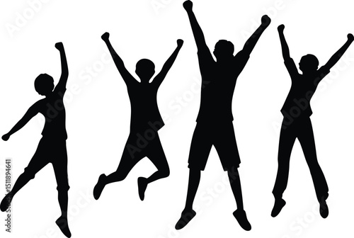 vector silhouettes of children's jumping