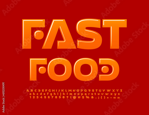 Vector unique emblem Fast Food for Cafe and Restaurant. Red gradient Font. Artistic set of Alphabet Letters, Numbers and Symbols