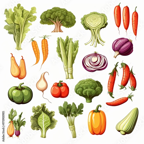 Vegetables set on white background.