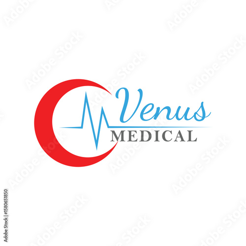 Venus Medical Logo Design Featuring a Heartbeat Symbol and Modern Typography, Showcasing Healthcare Branding Excellence