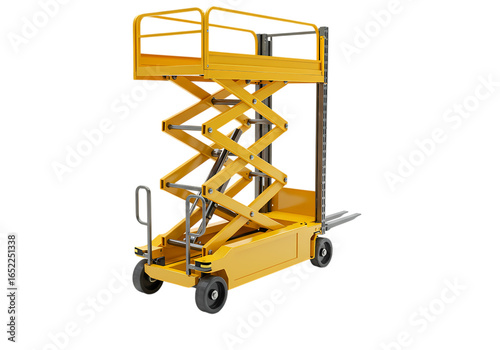 Versatile Yellow Scissor Lift Industrial Equipment for Warehouse Construction and Maintenance isolated on transparent background