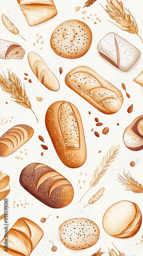Vertical illustration pattern of Breads on a light beige background