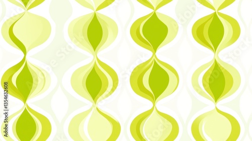 Vertical, repeating, abstract, swirling, light green and yellow, organic shapes, pattern, retro, geometric, design,