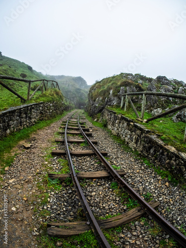 Vía de tren en una mina abandonada en los Picos de Europa de Asturias