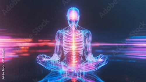 Vibrant 3D Render of Serene Meditator in Futuristic Setting. AI Generated