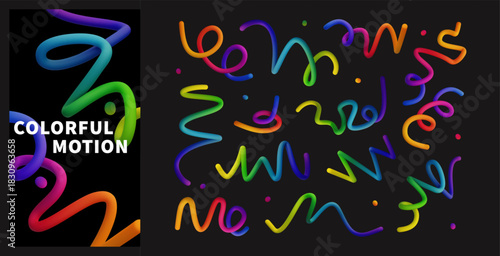 Vibrant Abstract Design with Colorful Curves and Gradient Elements on Black Background