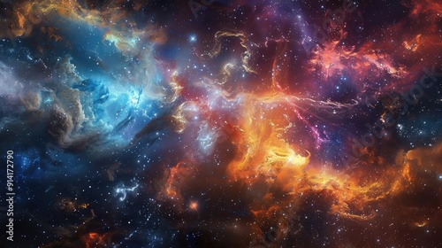 Vibrant and colorful depiction of outer space with swirling nebulas, showcasing the beauty and mystery of the universe.