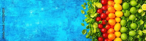 Vibrant Assortment of Fresh Fruits and Vegetables on a Colorful Background Showcasing Healthy Eating and Organic Lifestyle Choices