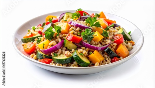 Vibrant Barley Salad with Roasted Vegetables: Zucchini, Red Onion, and Butternut Squash