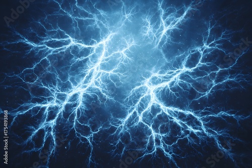 Vibrant Blue Lightning Bolts Illuminating Dark Space with Electric Texture for Energy Themes