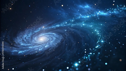 Vibrant blue spiral galaxy with glowing stars in deep space