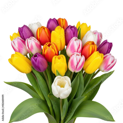 Vibrant Bouquet of Tulips: A captivating arrangement of multicolored tulips, showcasing a spectrum of hues and celebrating the beauty of spring.