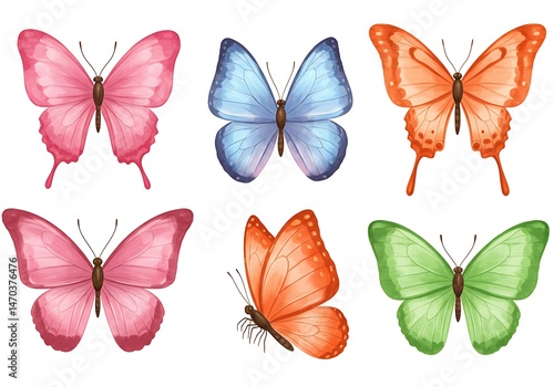 Vibrant Butterfly Collection: Pastel & Orange Hues AI Generated