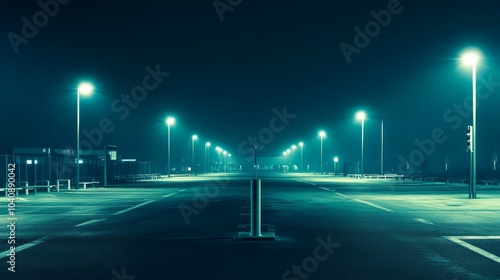 Vibrant city street illuminated at twilight with glowing streetlights and captivating ambiance