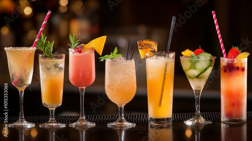 Vibrant Cocktail Party Refreshments on Blurred Background