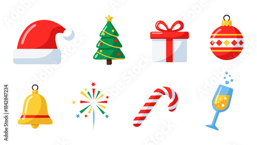 Vibrant Collection of Christmas and New Year Holiday Celebration Flat Icons