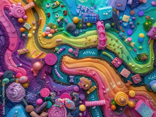 Vibrant confectionery scene with candy and sweet treats on a multicolored background
