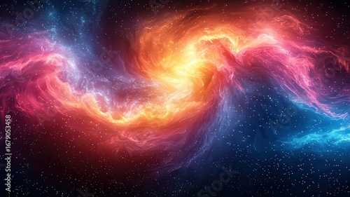 Vibrant Cosmic Nebula: A stunning swirl of fiery red, oranges, and cool blues n a starry backdrop, perfet for space-themed project and designs.