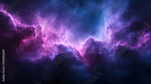 Vibrant Cosmic Nebula with Shades of Purple and Blue in Vast Starry Background