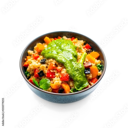 Vibrant Couscous Salad in Deep Blue Bowl