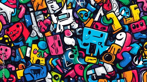 Vibrant digital design with playful, colorful characters.
