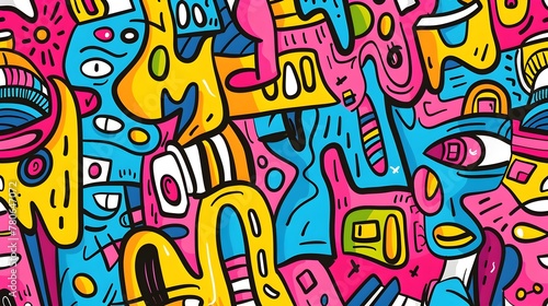 Vibrant Doodle Pattern of Colorful Abstract Shapes and Lively Lines Filling the Frame