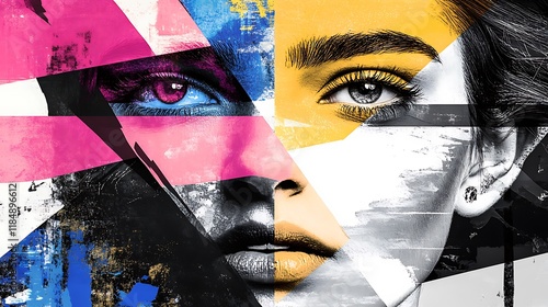 Vibrant Faces Forming an Abstract Expression, Blending Colors and Emotions into a Unique Artistic Composition