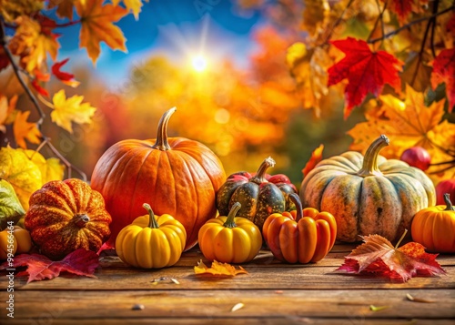 Vibrant Fall Holiday Background with Colorful Leaves, Pumpkins, and Cozy Seasonal Elements for Decor