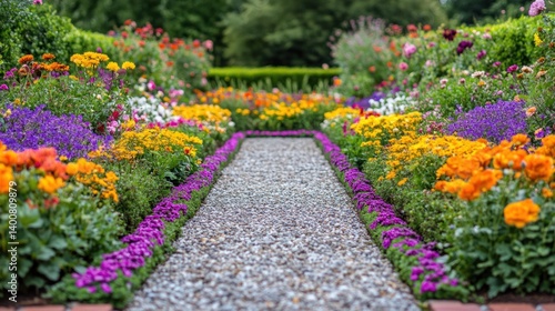 Vibrant Flower Garden Path: A Summer's Day in Bloom
