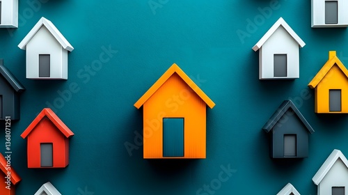 Vibrant Focal Point in Idyllic Village Cozy Row of Uniform White Houses with One Distinct Standout Orange Abode Highlighting a Real Estate Concept for Property Development and the Housing Industry
