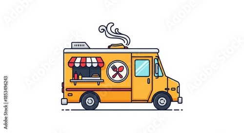 Vibrant food truck illustration with classic red and white awning design minimal style