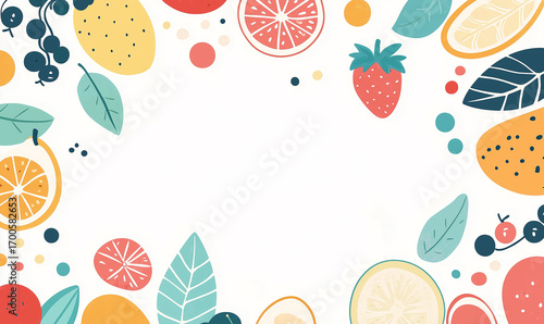 Vibrant Fruit and Leaf Patterns Nature Inspired Design Decorative Artwork Colorful Background Creative Composition Health and Wellness Concept
