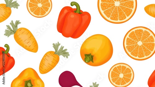Vibrant Fruit and Vegetable Seamless Pattern Design