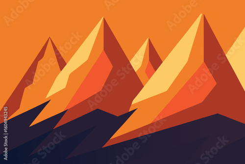 Vibrant Geometric Mountain Landscape Illustration with Fiery Sunset Colors
