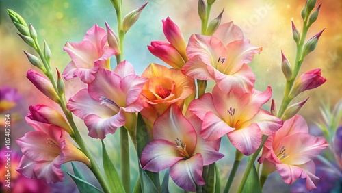 Vibrant Gladiolus Watercolor Artistry: A Lush Floral Composition Captured in Stunning Watercolor Techniques for Home Decor and Floral Inspiration