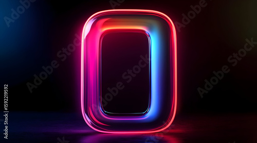 Vibrant, glowing, number zero, with neon-like, colorful, light effects. 3D render of digit, dark background