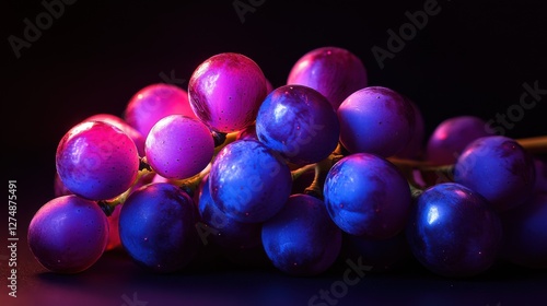 Vibrant Grapes with Glossy Skin Against Dark Background Highlighting Purple and Blue Tones in Soft Light
