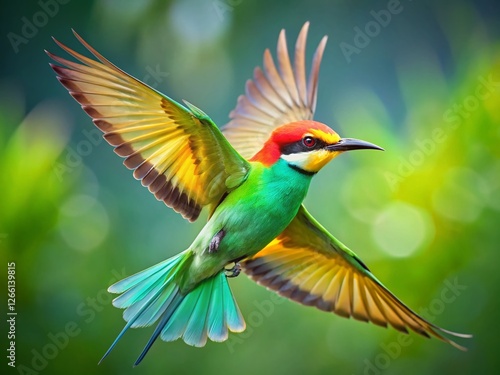 Vibrant Green Bee-eater Bird in Flight, Striking Pose, Nature Photography