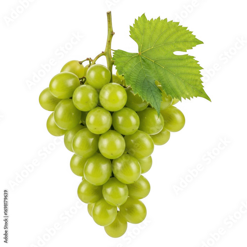 Vibrant green grapes with a leaf isolated on a transparent background for culinary uses