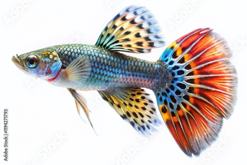 Vibrant Guppy Fish Swimming, Isolated High-Resolution Stock Photo