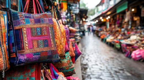 Vibrant Handicrafts at a Bustling Outdoor Market