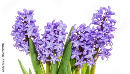 Vibrant hyacinth blooms against a white backdrop, ideal for floral design applications