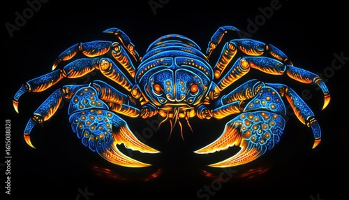 Vibrant Illustration of an Illuminated Zodiac Sign on Dark Surface with Detailed Design Elements