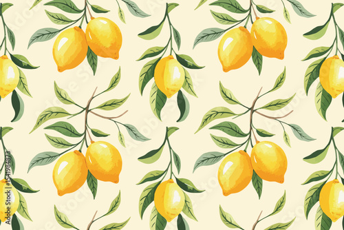 Vibrant Lemon Tree Branches Seamless Pattern Watercolor Citrus Illustration