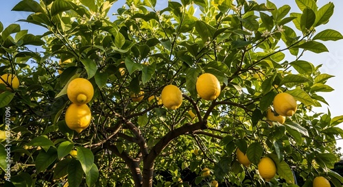 Vibrant Lemon Tree with Ripe Fruits Under Sunny Sky
